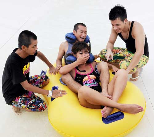 兩人接受懲罰挑戰滑水道,浩子為了保護小嫻,竟然把雙腳跨放在她纖細大腿中間,被JR發現後大呼:「你把腳放在哪裡啊?」想把腳抽出的浩子,竟然被小嫻一把抓回來,嬌嗔:「不要走嘛!」讓人不禁聯想,該不會愛上那雙毛毛腿的觸感吧?