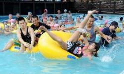 最後,大夥在水上坐在游泳圈上,比賽用鍋鏟、啤酒杯划水,看誰先到泳池的另一頭,沒想到小嫻和浩子組,才出發就不小心倒頭栽跌入水裡,讓現場所有人笑翻,還沒比賽就輸了!輸的浩子、小嫻只好接受懲罰,挑戰四層樓高U型滑水道‧浩子為了保護小嫻,聽從指導把雙腳跨放在小嫻兩大腿間,兩個人驚魂未定之際被JR發現直問浩子說:「你把腳放在哪裡啊?」原本想把腳抽出的浩子,還竟被小嫻一把抓住開玩笑說:「不要走嘛!」惹得現場大笑!」