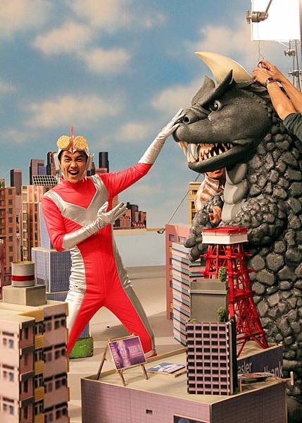 還要不停擺出誇張的武打動作(真有點害怕褲子會突然裂開呢..)